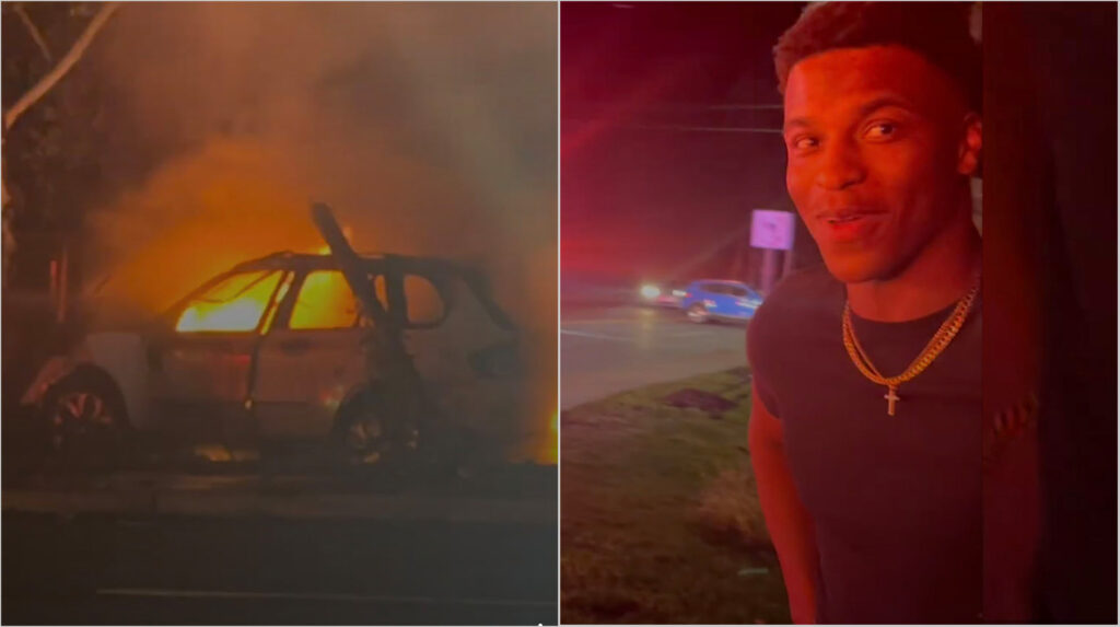 “There wasn’t time to think twice,” the football player said, when downed power lines sparked beneath a crashed car.